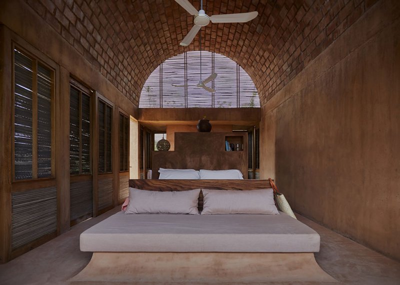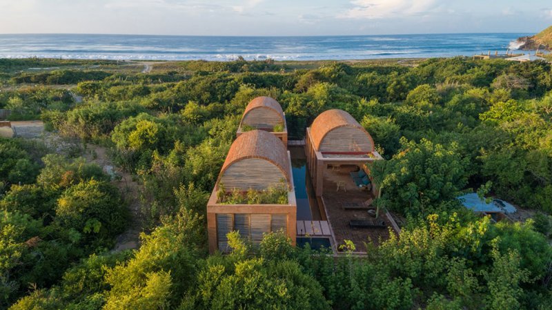 Архитектурная студия Ambrosi Etchegaray спроектировала курорт Casa Volta, включающий три кирпичных дома со сводчатыми потолками. Они стоят в густом лесу на побережье Оахаки в Мексике.