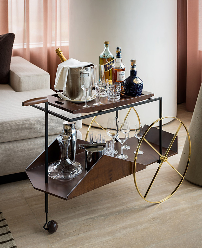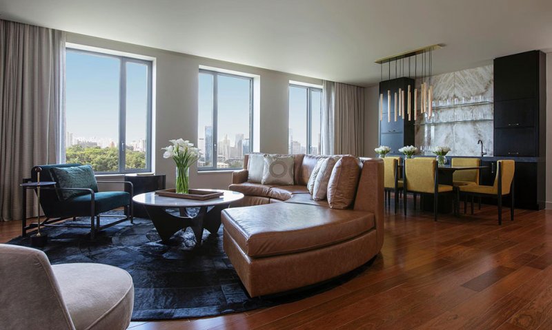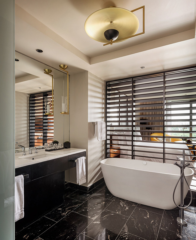 Элегантные детали и смелые пропорции определяют интерьеры номеров. Подчеркивая прозрачность, решетчатая стена отделяет ванную и спальню. Гранитный пол сочетается с деревом ятоба.