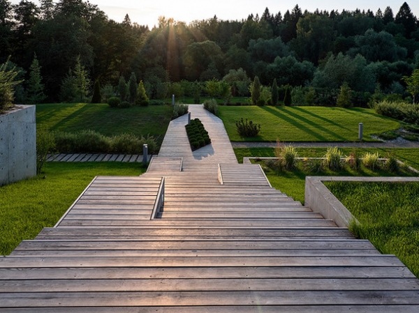 Участок имеет террасную природу, красоту которой архитекторы «поддержали» дорожками и мостками.