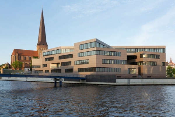 На берегу живописной реки Унтерварнов в Германии находится здание сложной конструкции — с одной стороны оно похоже на треугольник с очень острым углом, который создает иллюзию "тонкого" сооружения.