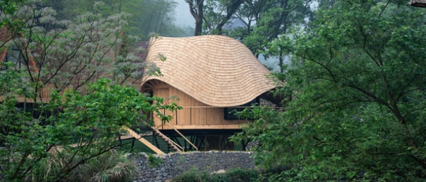 Шанхайское архитектурное бюро Monoarchi построило бамбуковый дом с волнообразной крышей.