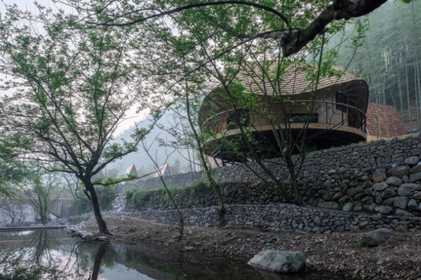 Необычная постройка расположилась у подножия горы в небольшом китайском городе Юйяо. Строение окружено высокими бамбуковыми деревьями, так что вопросов, как гармонично вписать дом в окружающий ландшафт, не возникало.