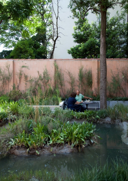 “Мы решили создать сад, посетители которого смогли бы ощутить атмосферу города в небольшом зеленом пространстве. И более того, это проект, который помогает стереть границы между двориком и остальным городом”, — рассказывают архитекторы.