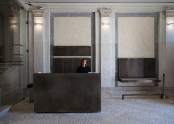 Реставрацией по заказу фонда V-A-C занималось венецианское бюро APML Architetti, и каждый их шаг согласовывался с департаментом культурного наследия Венеции. Все элементы здания реставрировались тщательно — вплоть до балок в деревянных перекрытиях, не говоря уже о роскошных колоннах и фресках. А полы были восстановлены по старинной технике terrazzo veniziano, причем для получения пасты мастера использовали старый мрамор и каменную крошку с прилегающей набережной. Единственная новая часть палаццо Дзаттере — внушительная лестница, соединяющая четыре этажа и выполняющая роль “сердца здания”.