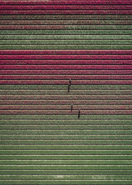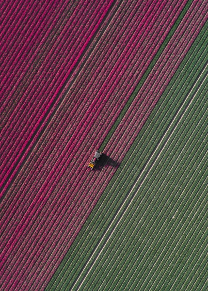 “Голландские фермеры выращивают около двух миллиардов тюльпанов каждый год. Цветы полностью расцветают только на три-четыре недели в году, с апреля по май. Как только тюльпаны распускаются, фермеры тут же проходятся по полям и срезают цветные головки, чтобы оставшаяся энергия цветка направилась обратно в луковицу и та становилась лучше и сильнее, потому что продаются в основном луковицы тюльпанов, а не сама цветущая головка”, — рассказывает немецкий фотограф Том Хеген о цветочном бизнесе в Голландии.