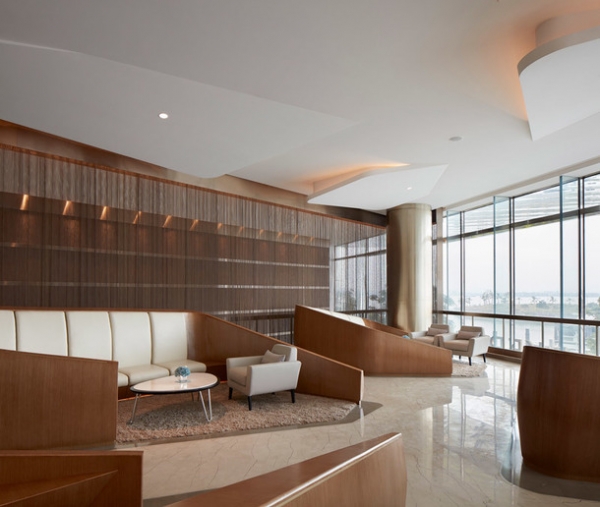 В дизайне Marina были задействованы те же приемы, что обычно используют при строительстве яхт: большое количество натурального дерева, панорамное остекление, мягкие изгибы форм.