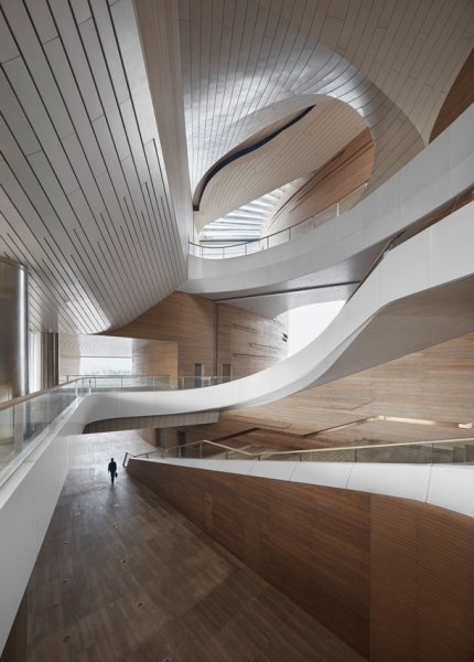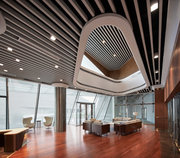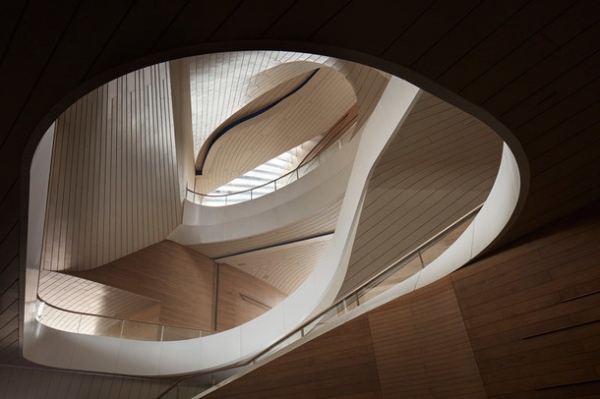 Благодаря окнам здание всегда наполнено естественным светом, а “воронкообразные” пространства позволяют использовать естественную вентиляцию. Конечно, воронки созданы не только для этого — в них расположены лестницы, которые обеспечивают свободный доступ к любым уровням здания. Они создают ощущение, что пространство мягкое, тягучее, и это расслабляет человека.
