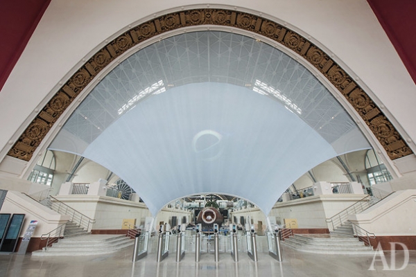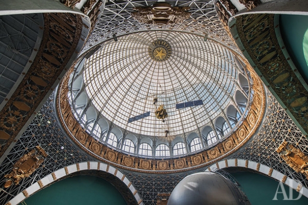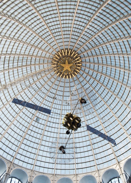 Весной 2018 года павильон “Космос” окончательно преобразился и уже готов к открытию. Реставрационные работы велись чуть больше года, что по сравнению с аналогичными проектами — рекордно короткий срок. За это время удалось, например, полностью заменить остекление аркады купола и эллинга, накрывающего новый музейный центр “Космонавтика и авиация”. Внешние фасады строения приобрели аутентичный песочно-золотистый цвет, а массивная скульптурная группа на крыше была отреставрирована. Но, конечно, самым эффектным элементом павильона стал купол. Признаемся честно, оторвать глаза, стоя прямо под ним, совершенно невозможно.