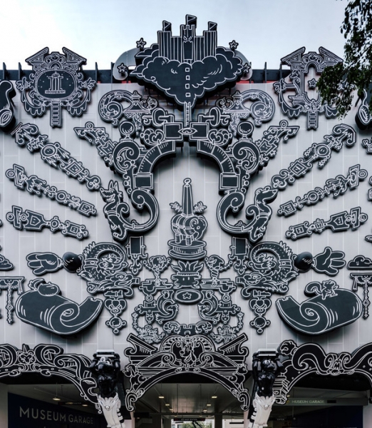 “Серьезная игра” студии Nicolas Buffe пришлась на центральную часть гаража: там, где расположены въезд и выезд, торжественно оформленные мультяшными атлантами. Вдохновением Бюффу послужило одновременно европейское барокко и японское аниме. Из такого взрывного сочетания родился графичный черно-белый фасад с многочисленными изображениями, вырезанными лазером по металлу или отлитыми из смол, которые хочется долго-долго рассматривать.