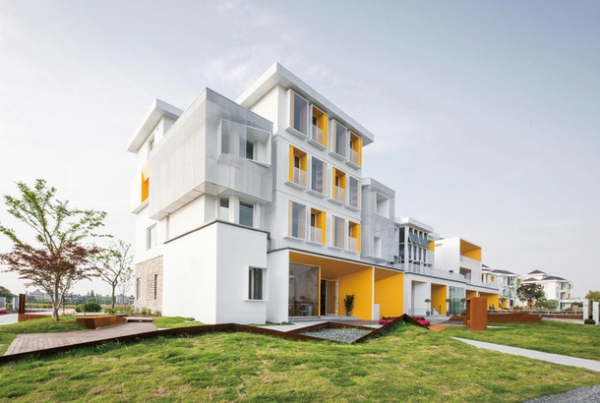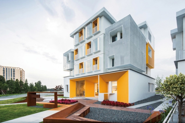 Бюро Hangzhou SSDesign решило полностью переделать здания, при этом наделив их оригинальной самобытностью. Архитекторы не стали делать их нарочито симметричными — наоборот, окна, балконы, террасы появляются в неожиданных местах. Пространств под открытым небом, кстати, в проекте достаточно много — чтобы жители всегда могли контактировать с окружающей средой.