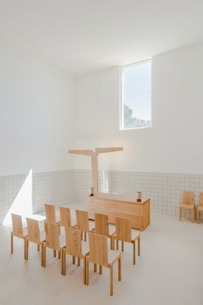 Часовня была спроектирована как проект "чистой архитектуры" — в ней нет ни электричества, ни водопровода, ни обогрева. Здесь только естественная вентиляция и материалы, поддерживающие тепло зимой и холод — летом.