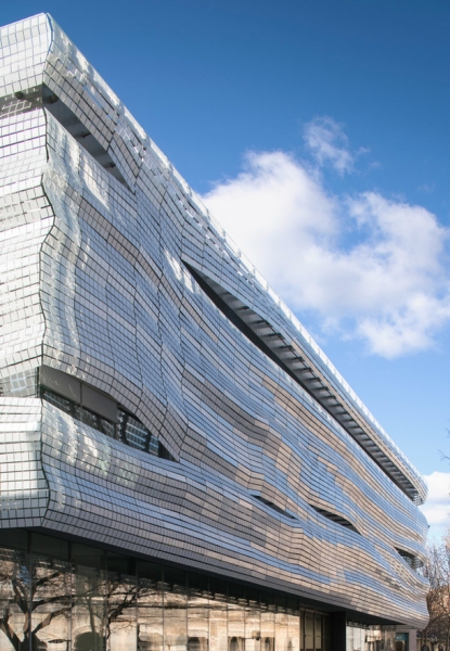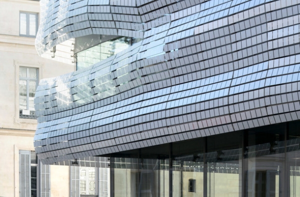 Подойдя ближе, можно заметить, что фасад состоит из тысяч стеклянных пластинок, которые олицетворяют традиционное римское искусство — мозаику. Облик полупрозрачной “кожи” меняется на протяжении всего дня, поскольку зависит от движения солнца.