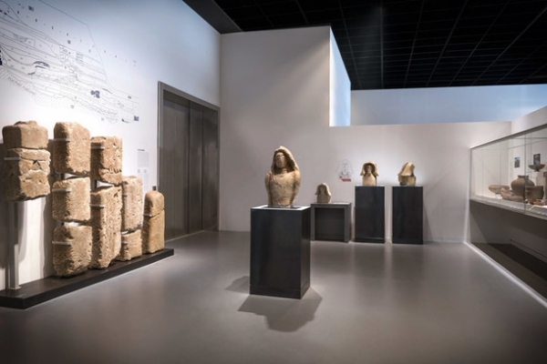 Когда посетители попадают на первый этаж музея, они сразу могут насладиться древними сокровищами римлян, поскольку в центре здания, в 17-метровом атриуме, находится фрагмент пропилеев, датируемых годом основания доримского города.