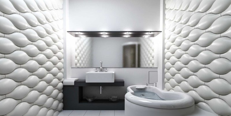 Трехмерными именуются фэшн-листы, своей текстурой напоминающие настоящую лепнину. 3Д-панели позволяют создать неповторимое стилистическое оформление, особенно если интерьер дополнить точечной или светодиодной подсветкой. Для повышения влагостойкости панели окрашивают акриловыми красками подходящих расцветок. Оформление подойдет для различных стилей интерьеров – от барокко до футуризма.