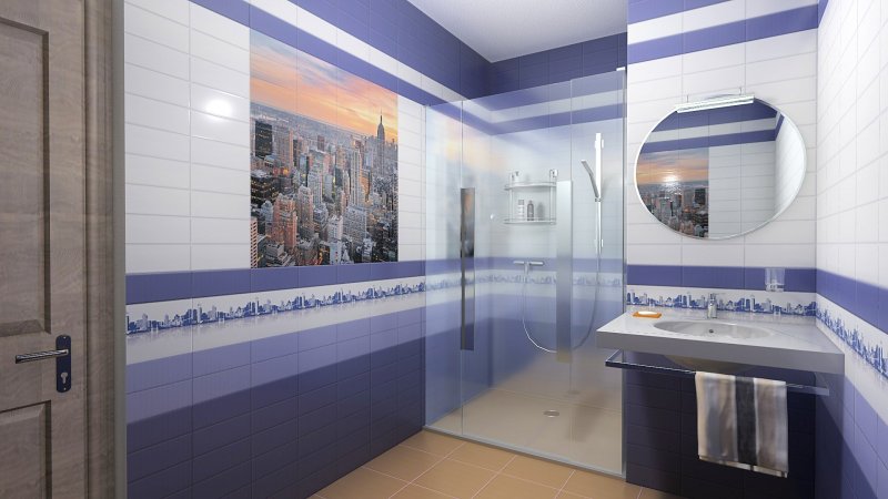 Стекло с фотопечатью обычно монтируют на одной стенке, отделывая остальные материалами серого, белого или любого другого неяркого колера.