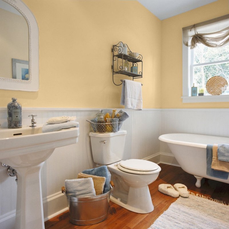Для покраски стен, пола, потолка в санузле, красящий состав подбирается следующий: