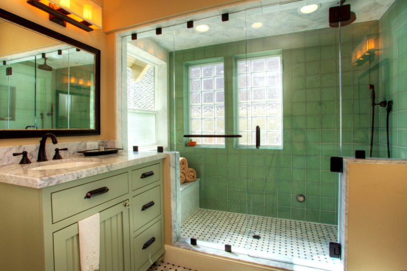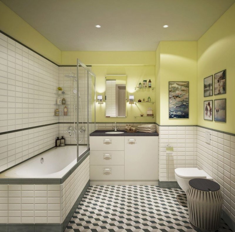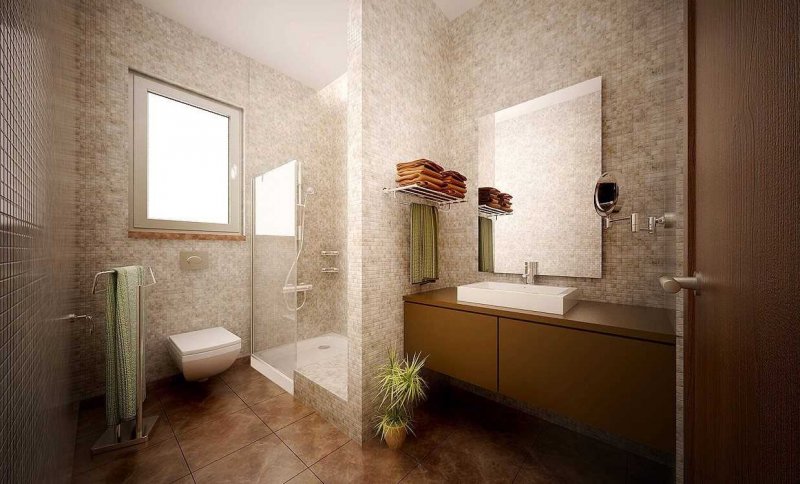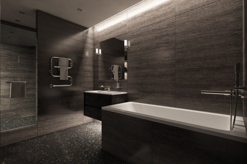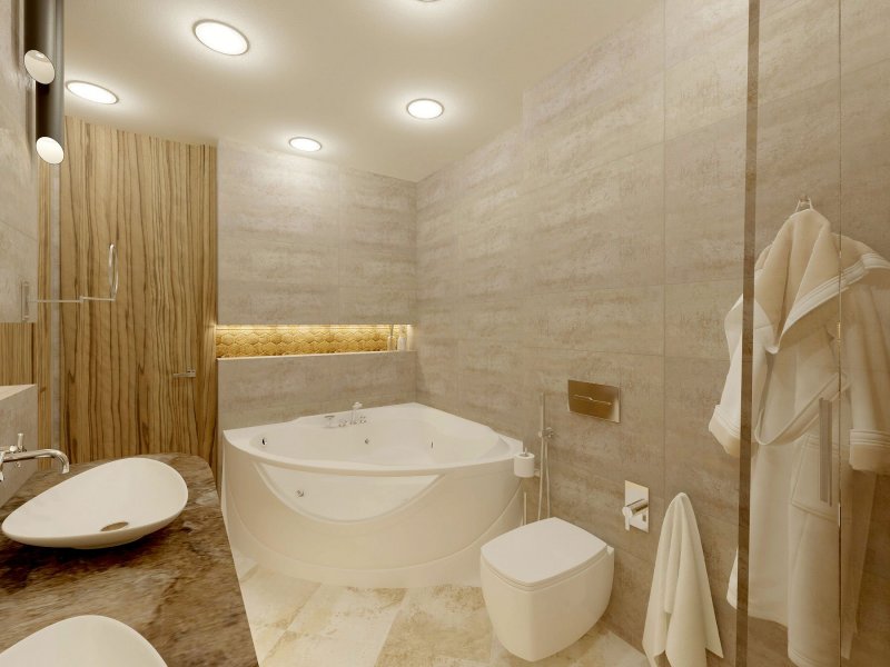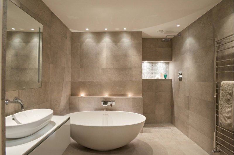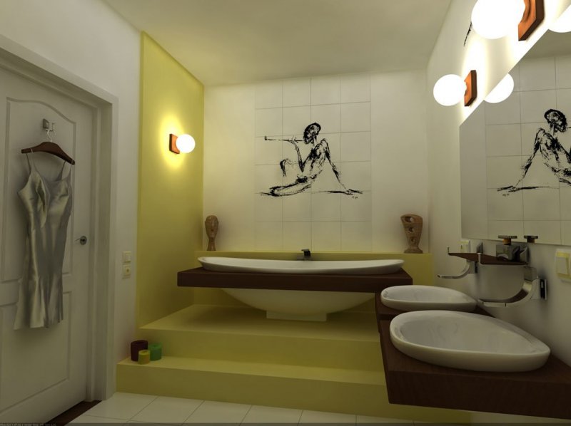 При наличии макияжного зеркала, кресла, сидя в котором предполагается читать после водных процедур, свет в этих зонах делается наиболее ярким.