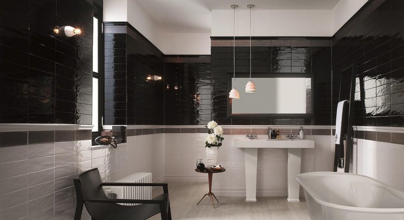 Отделка должна соответствовать стилистике выбранной сантехники – ванна с золочеными ножками не подойдет к грубой деревянной отделке, а минималистический смеситель плохо смотрится в окружении лепных деталей.