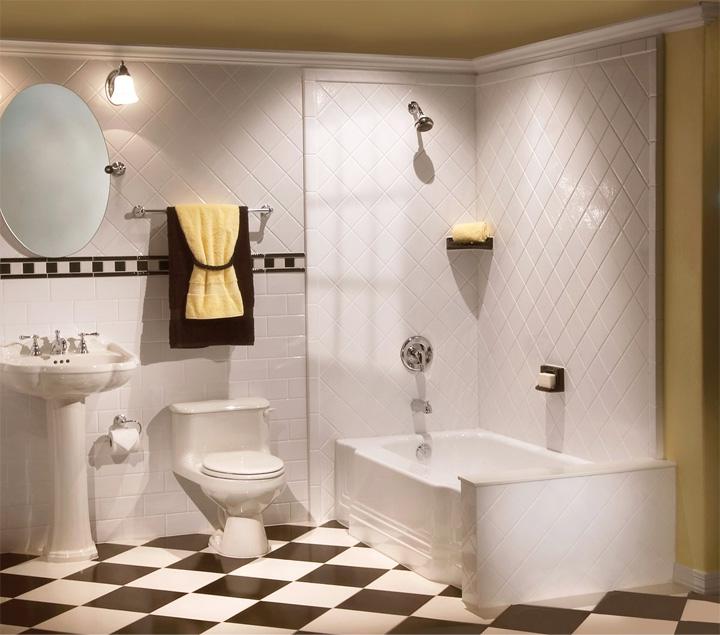 При одинаковой мощности ламп в туалетной комнате со светлой глянцевой отделкой будет светлее, чем в помещении, оформленном в темных тонах.