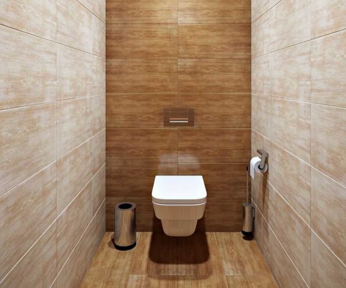 В раздельной туалетной комнате можно применять любые материалы. Для совмещенного санузла нужна влагостойкая облицовка, которая хорошо чистится, невосприимчива к плесени, грибкам. В просторном туалете больше возможностей для оформления. Чтобы сделать маленькую туалетную комнату зрительно просторнее, придется прибегать к хитростям.