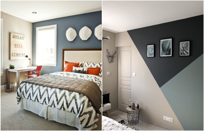 После того, как определитесь с цветом, подумайте, какую стену можно сделать акцентной. Обычно, это поверхность за диваном, телевизором или в изголовье кровати, но вы можете выбрать, что захотите. Кстати, совсем необязательно полностью красить всю стену от пола до потолка – вдохновляйтесь принципами колор-блока и меняйте оттенок только на отдельных участках. Рисуйте полосы, прямоугольники, квадраты или более сложные геометрические фигуры.