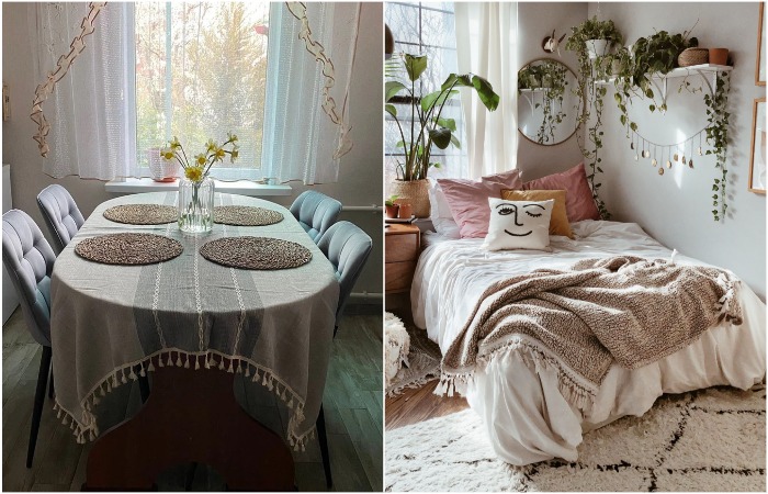 Также можно заменить наволочки на декоративных подушках, коврик в ванной и на кухне, покрывало (осенью и зимой отлично смотрятся вязаные экземпляры). Старайтесь подбирать вещи с разными фактурами – так итоговая картинка получится более интересной.