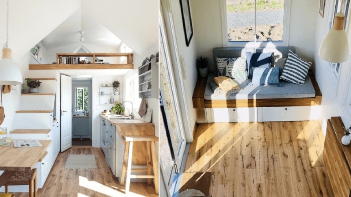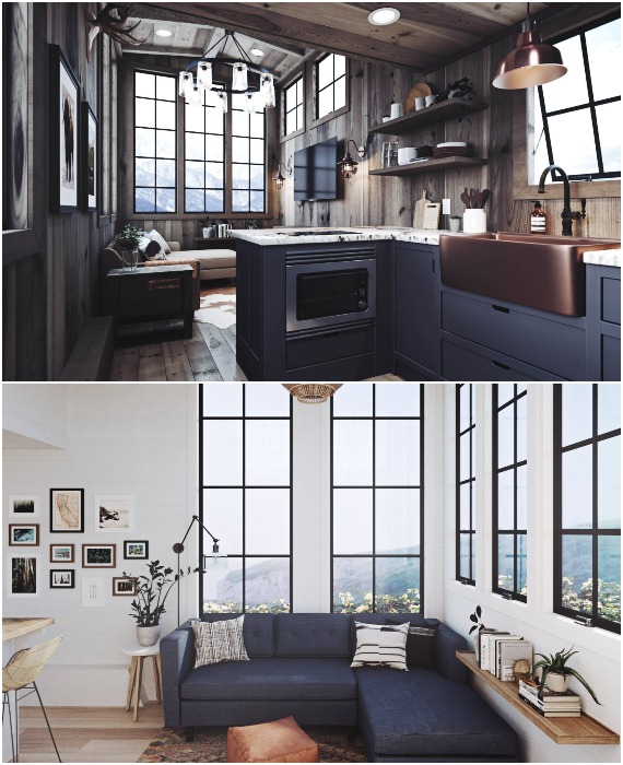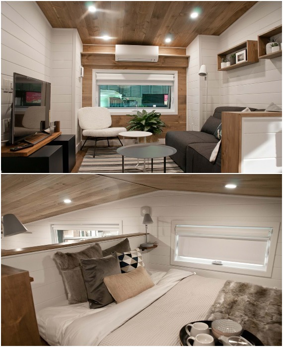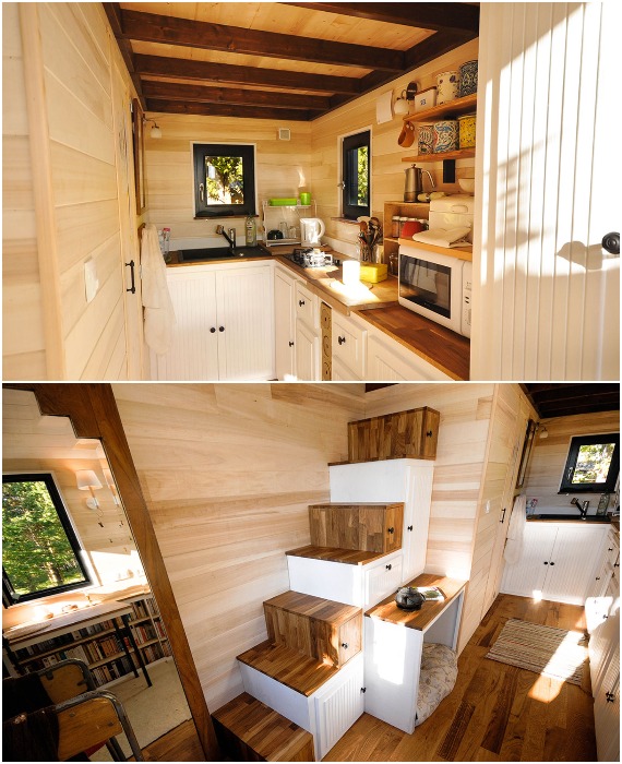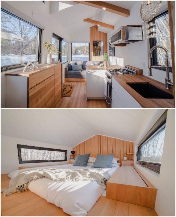 Оптимизация пространства позволила сделать все, чтобы владельцы не чувствовали никаких ограничений (мобильный дом Avonlea). | Фото: © Tiny House Baluchon.