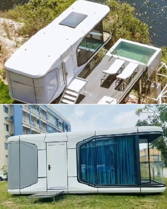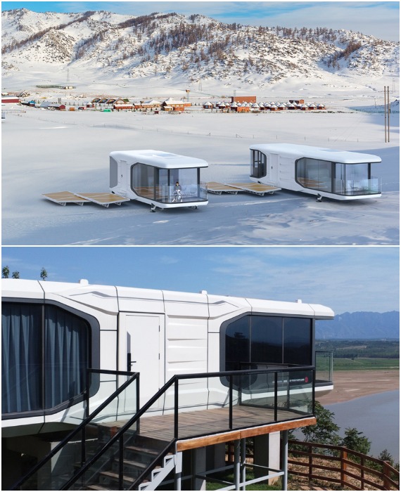 Примечательно: Тщательно подобранные высокотехнологические материалы и системы жизнеобеспечения позволили создать более чем комфортные условия проживания в любой климатической зоне, с любой температурой, влажностью и порывами ветра, что делает жизнь в модуле абсолютно безопасной и умиротворяющей. Эти преимущества по достоинству оценили организаторы эко-отелей, которые открываются в самых живописных заповедных местах, куда еще не дошла цивилизация, а порой и доставить сборные структурные компоненты можно лишь по воздуху. Но это обстоятельство никак не сказывается на прекрасно организованной структуре модуля, который можно установить даже в городе, а то и на крыше многоэтажки.