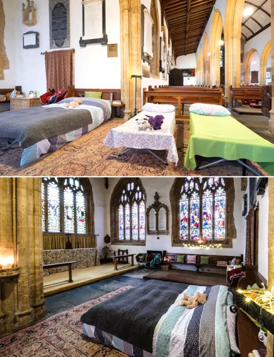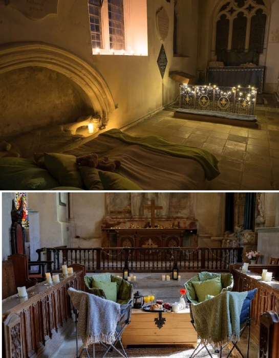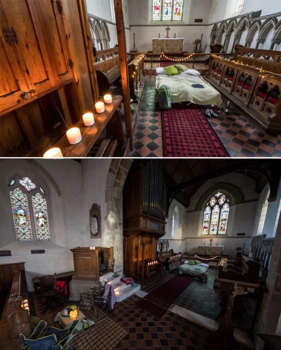 В 2015 году Фонд сохранения церквей Великобритании запустил неожиданную для большинства людей программу, позволяющую менять функционал церкви во благо самой божьей обители и путешествующих, ищущих ночлег. Естественно, речь идет не о крупных действующих храмах, а о церквях, давно потерявших свой функционал, но сохранивших качественные здания, которые можно использовать с пользой для общества и сохранности. С тех пор появился и специальный термин, определяющий статус подобного рода гостевых домов – «champing». Такой себе не то кемпинг, не то глэмпинг в часовне, где путешествующие могут разбить лагерь и в более чем атмосферном месте провести ночь-другую.