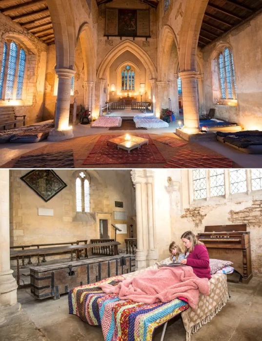 Теперь в главном зале церкви Всех Святых может переночевать группа туристов (Лэнгпорт, графство Сомерсет).