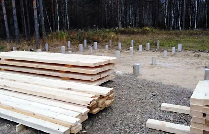 Сваи допустимо устанавливать при любой температуре воздуха, поэтому возведением основания можно заняться осенью, а приступить к возведению стен в начале весны.
