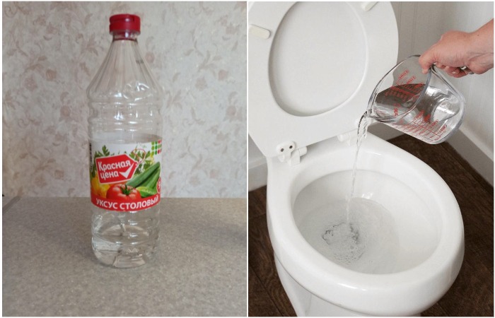Налейте в унитаз 200 миллилитров уксуса и оставьте на ночь