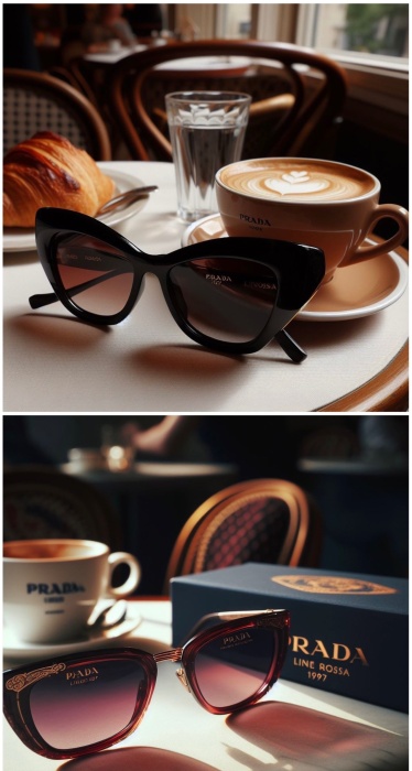 Очки Teashades Prada Linea Rossa (1997): Модель Prada Linea Rossa, представленная в 1997 году, сочетает в себе современный дизайн и высокое качество материалов. Они часто имеют логотип Prada на дужках и являются символом роскоши и стиля.