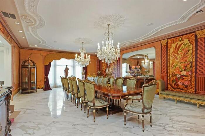 Интерьер главной столовой в особняке главаря криминальной группировки Гамбино (Стейтен-Айленд, Нью-Йорк).