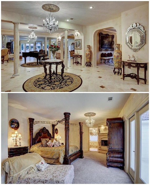 Роскошное убранство особняка, на оформление которого главарь бандитской группировки Палермо не жалел кровавых денег (Хьюстон, США). Палермо ни в чем себе не отказывал во время оформления особняка, благодаря чему резиденция может похвастаться причудливым фонтаном и бассейном, мраморными полами, колоннами и каминами, сложной лепниной и хрустальными люстрами, дорогой антикварной мебелью и коллекцией картин (поговаривают, что все они являются репродукциями), зеркалами из муранского стекла, коврами ручной работы, великолепным роялем и т. д.
