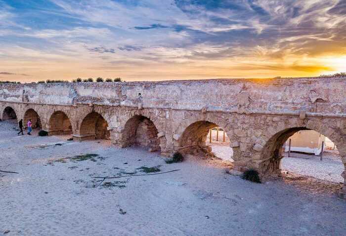 Акведук Кейсарии (The Caesarea Aqueduct) – это живописные, хорошо сохранившиеся руины древнеримского акведука, который обеспечивал одноименный город спасительной водой. Процветающий город еще до нашей эры был крупных культурным центром, в котором катастрофически не хватало воды, а ее постоянной поставки к тому времени и вовсе не существовало. С приходом древних римлян был проложен водовод от источника, расположенного в 12 километрах к северо-востоку от города. Стоит отметить, что большую его часть составляли акведуки, названные в честь города, который не так долго процветал, чтобы его жители могли порадоваться бесперебойно поступающей воде. Несмотря на то, что акведук Кейсарии длительное время был заброшен, его руины доставят немалое удовольствие любителям путешествий, которые смогут сполна насладиться его величием прямо с пляжа, где сохранились наиболее значимые его части.