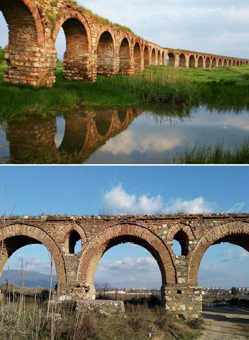 Акведук Скопье (The Skopje Aqueduct) – неплохо сохранившийся каменный мост, расположенный к северу от македонского города Скопье. Это, пожалуй, единственное масштабное гидротехническое сооружение, история появления которого до сих пор не раскрыта. Из более вероятных гипотез является та, которая основывается на предположениях, что акведук был построен в период властвования Византийской империи, во время правления Юстиниана I. Покрыты тайной и его технические характеристики, сохранилось лишь 390-метров структуры из красного кирпича, расположенной среди живописного ландшафта, до которой много столетий не было никому дела. Частичная консервация и реставрация удивительного творения рук человеческих началась лишь в 2021 г.