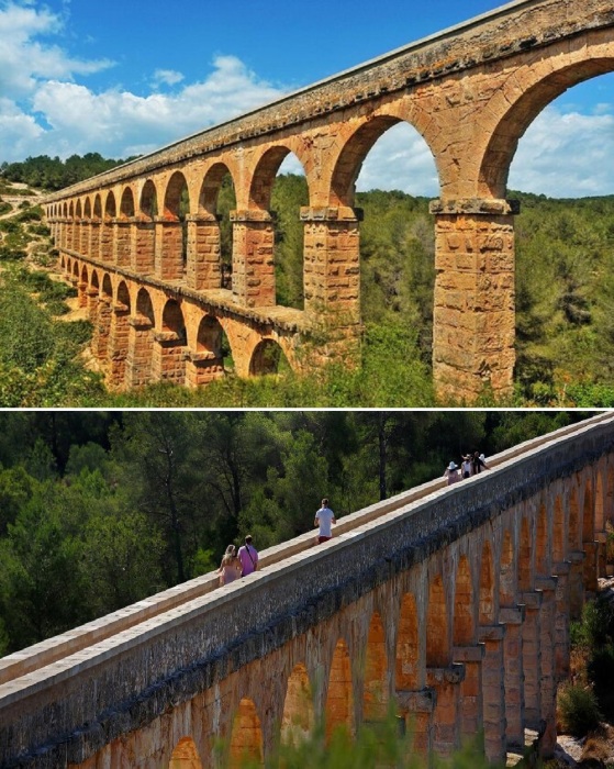 Просто потрясающий акведук Таррагоны (также известен как акведук Ферререс, катал. Aqüeducte de les Ferreres) является последним сохранившимся участком древнего акведука, который служил римскому городу Таррако. Считается, что он был построен в I веке нашей эры во время правления императора Августа. Изначально, сложнейшая гидротехническая магистраль с комплексом сооружений, протяженностью 25 км доставляла воду из реки Франколи до города Таррако. Со временем, с падением Римской империи, сохранилась лишь часть водопровода длиной около 4 километров (находится к северу от современной Таррагоны). К счастью, впечатляющее сооружение бережно сохранялось на протяжении последующих веков, даже несмотря на то, что территория не раз переходила под власть других государств. Сейчас он входит в состав археологического ансамбля Таррако и Эко-исторического парка Пон-дель-Диабле, а в 2000 году Aqüeducte de les Ferreres внесен в Список Всемирного наследия ЮНЕСКО.