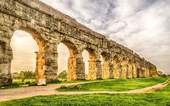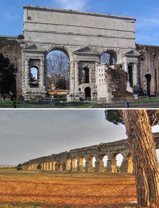 Акведук Клаудио (Aqua Claudia) или Акведотто Клаудио – это один из четырех великих инженерных сооружений Древнего Рима, строительство которого было завершено во время правления императора Клавдия (ему и посвящен), в 52 году нашей эры (начало строительства 48 г.). Акведук, протяженностью 69 километров (!) пролегал от своих главных источников в Керулюсее и Курции, он проходил преимущественно под землей. Когда водовод приблизили к Риму, пришлось возводить серию акведуков, чтобы преодолеть преграды и поднять воду на достаточную высоту (до 30 м). Все эти объекты входят в археологический комплекс «Региональный парк Аппиа Антика», который позволяет совершить путешествие во времени, чтобы увидеть, как надземные арки, построенные более чем 700 инженерами имперской водной службы (о количестве рабочих сведений нет), поддерживали непрерывный уклон от источника воды в горах к воротам города (за сутки поступало около 190 тыс. куб. метров).