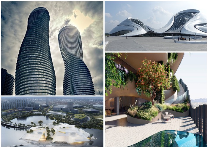 Ма Янсун сразу же вышел за рамки создания «зеленых» крыш на относительно обычных зданиях, которыми изобилуют проекты архитекторов. Если Ма и его студия берутся за работу, то следует ожидать грандиозные комплексы, в которых растительность, если и не является одним из главных аспектов общего дизайна, то природные формы и стилизованные элементы гор, рек, сугробов и т. д., обязательно присутствуют. Чтобы в этом убедиться, редакция Novate.ru предлагает взглянуть на лучшие проекты бюро, сделавшего себе имя на разработке и строительстве зданий будущего, к которому стоит стремиться, чтобы сохранить самобытность городов, да и саму планету, ведь живые растения являются не просто украшением. • Башни Абсолют в градостроительном проекте «Абсолютный мир» (Миссиссога, Канада)