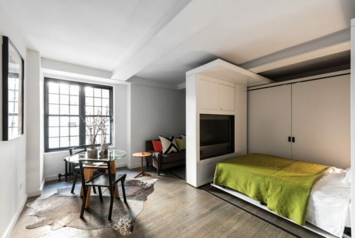 Жизнь в таком большом городе, как Нью-Йорк, имеет множество преимуществ, но при этом она не лишена недостатков, главным среди которых является нехватка жилой площади. На какие только ухищрения не идет изобретательный народ и дизайнеры, в том числе, чтобы превратить крошечные квартиры в достойное жилище. Одна из таких квартир стала образцом для подражания после того, как над ее обустройством поработали специалисты архитектурно-дизайнерской студии MKCA Architecture, под руководством совладельцев Брейдена Колдуэлла и Майкла Чена.