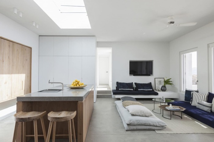 Открытая планировка общих жилых зон сделала пространство более объемным (Syros Summer House, Греция). | Фото: karmatrendz.wordpress.com.