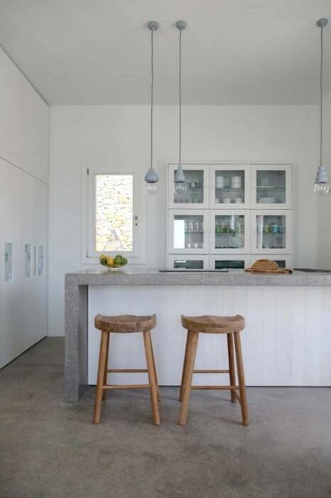 Кухня с островом, выступающем в роли барной стойки (Syros Summer House, Греция). | Фото: architizer.com.