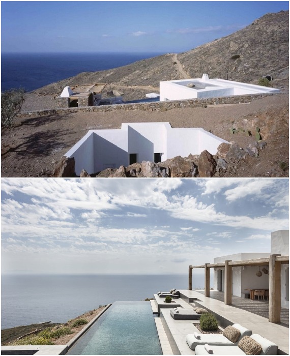 Особой гордостью являются видовые бассейны, поверхность которых сливается с морской гладью (Syros Summer House, Греция). | Фото: homedesignlover.com.