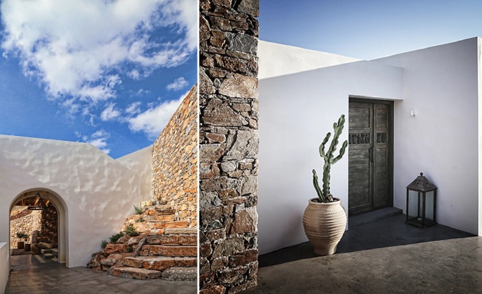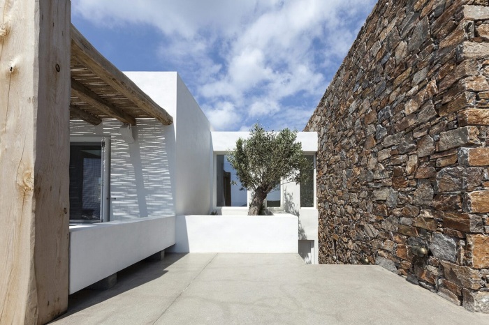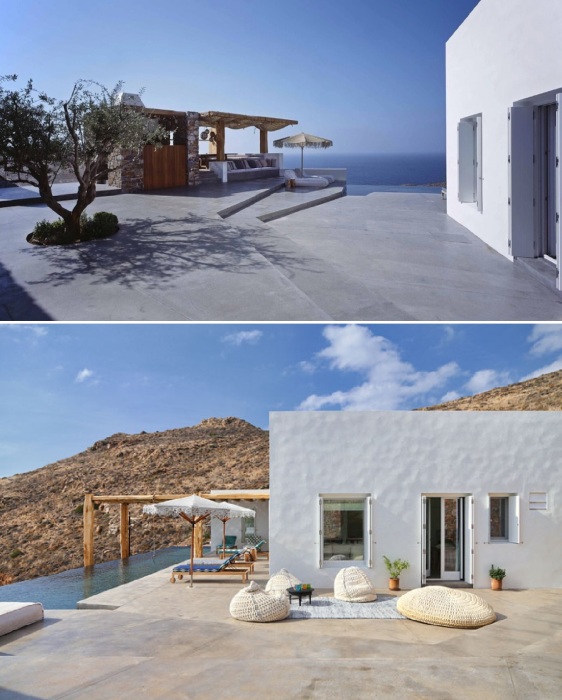 Пример того, как гармонично соседствуют традиционные строительные материалы и современный бетон (Syros Summer House, Греция). | Фото: bestdesignideas.com.