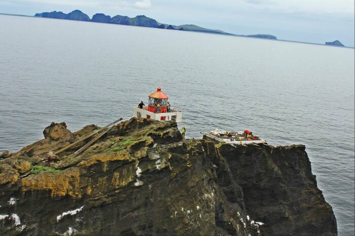 Это сегодня на остров к маяку Тридарангар можно добраться при помощи вертолета. А строился он в те времена, когда плавать приходилось на лодке. Идея установить хотя бы самый примитивный маяк появилась в середине 1930-х. Воплощать в жизнь проект начали в 1938 году усилиями трех скалолазов из числа местных жителей Хеймаэй. До заветной скалы строители добрались на лодках, привезя все необходимое с собой. Сначала пришлось обустроить подъем на отвесную скалу.