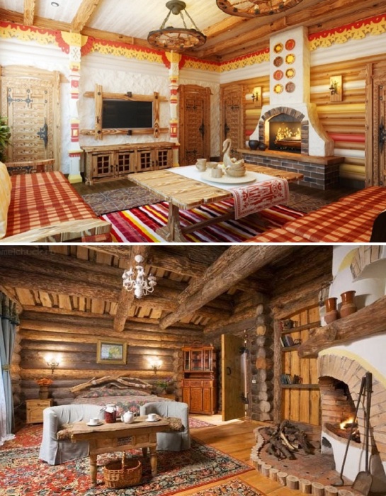 Авторы Novate.ru хотели бы отметить, что это касается и использования декора в дизайне интерьера и экстерьера дома. Деревенский декор в чистом виде более тяжелый, темный и плотный, без изысков и изящества линий, особой ажурности (исключения могут составлять жилища профессиональных резчиков по дереву и особо увлеченных владельцев). Современный же деревенский стиль включает в себя более изысканные и утонченные формы, даже если и использовался натуральный, грубый материал. В этом случае получаются более чистые, свежие и легкие предметы, но с приземленной эстетикой.