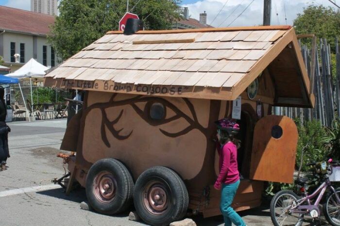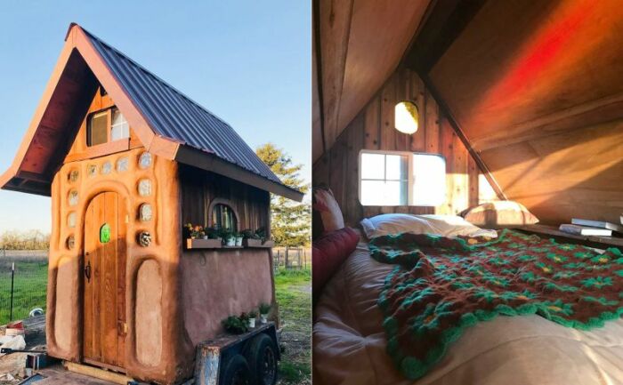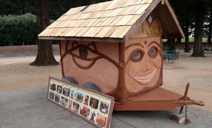 Зачастую глиняные домики устанавливают на прицепную платформу, чтобы их можно было перевозить из города в город привлекая внимание с глинобитной технологии как можно больше людей (работа Мигеля Эллиотта). | Фото: thesustainablenetwork.com.