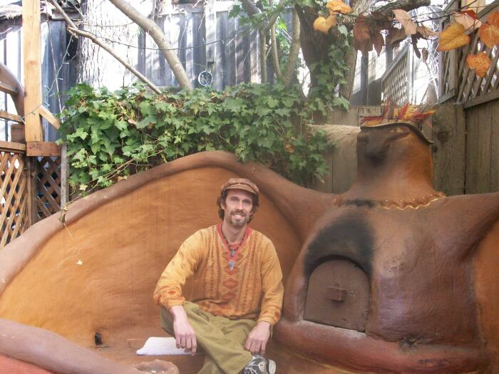 «Пряничный» домик Мигель Эллиотт построил из глины, в состав которой добавляли сухие початки. | Фото: thexpollinators.com. Интересный факт: В 2012 году Мигель Эллиотт был посвящен в рыцари с титулом «Сэр Кобало» Верховной Жрицей во время церемонии зимнего солнцестояния в храме под названием «Оазис Изиды». Это был тот самый день, когда он объявил о своей жизненной миссии посвятить себя тому, чтобы нести миру природные строительные технологии. Музыкант-психолог по образованию, после окончания колледжа пытался делать карьеру в музыкальной терапии, но в этом направлении работать он так и не стал. Его увлекла собой «землетерапия», ведь Мигель свято верит в важность общения и гармоничного сосуществования с природой, в частности с землей. Он считает, что за земляным строительством будущее прогрессивного человечества, поэтому активно участвует в жизни общества, привлекая все больше и больше энтузиастов.