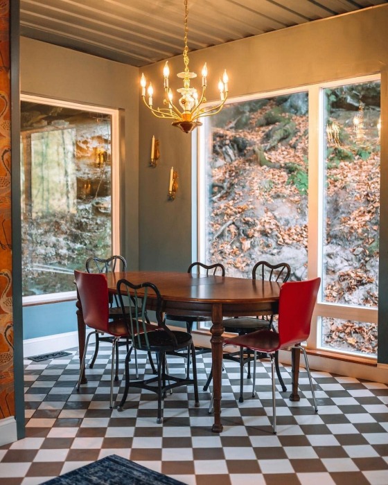 Зона столовой в контейнерном доме Roca Box Hop (Хокинг-Хиллз, Огайо). | Фото: theboxhop.com.